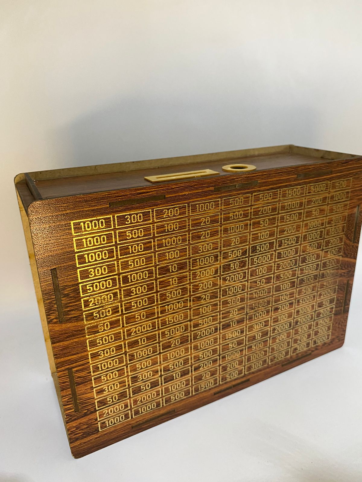 The 210K Money Saving Box is a practical and elegant way to save money. Made from high-quality wood, it features a structured design that allows you to save up to 100,000 in small increments of 200, 400, and 1000. With more slots and higher denominations, it’s ideal for those who want to reach their savings goals faster.